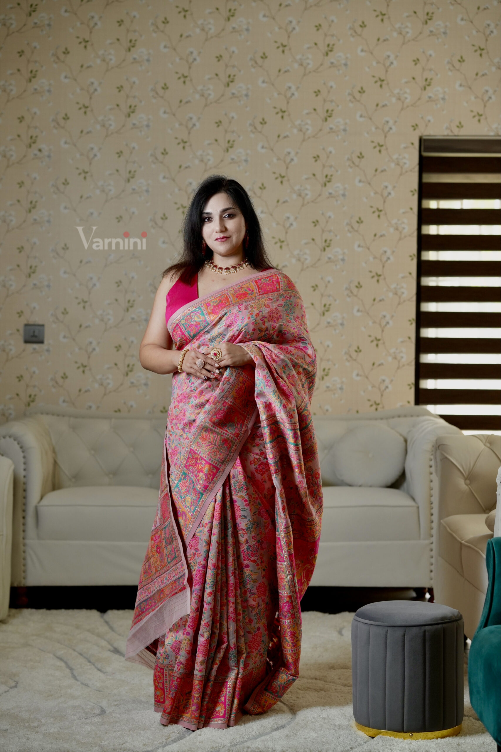 The Blush Rose Kashmiri Weave Saree ✨