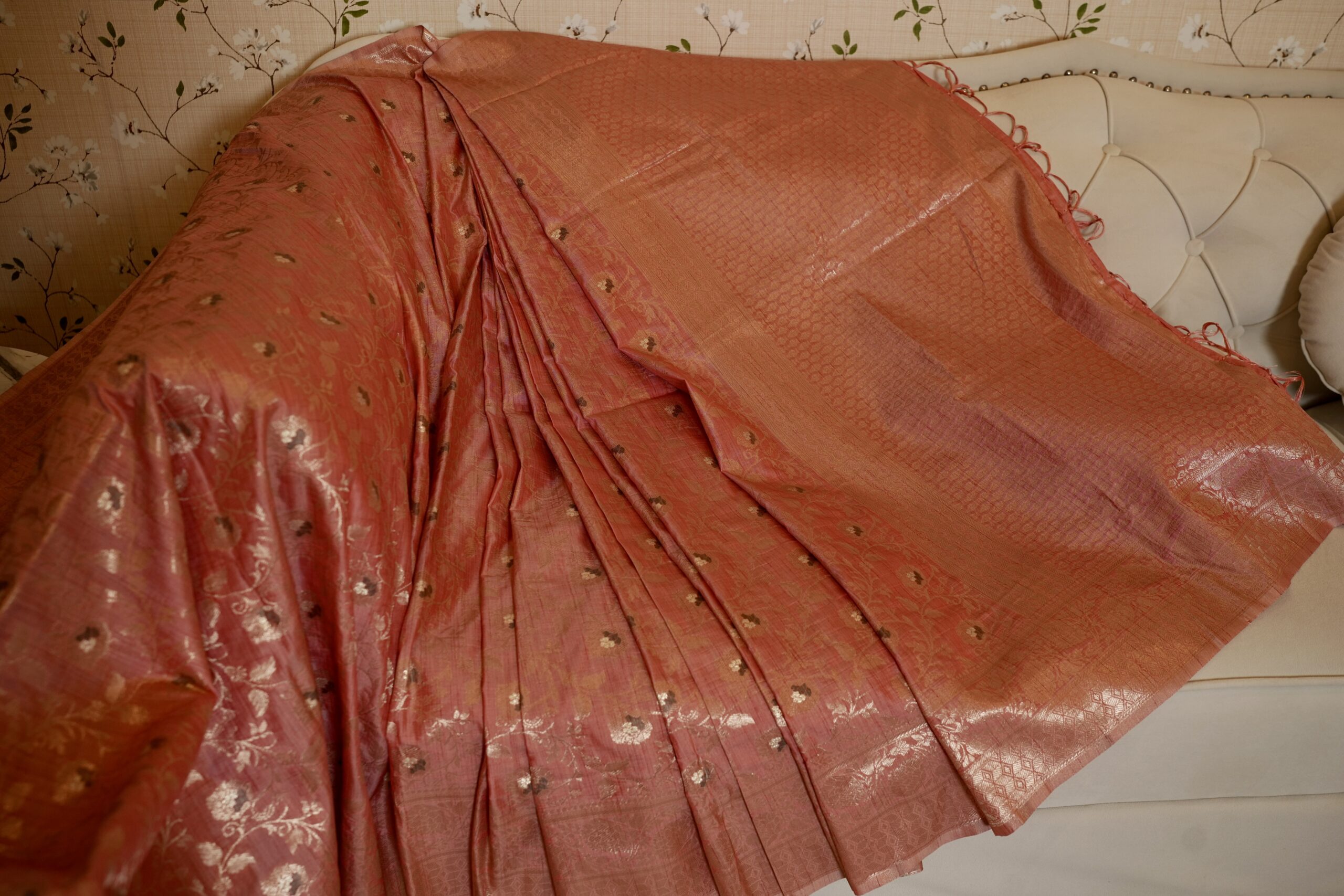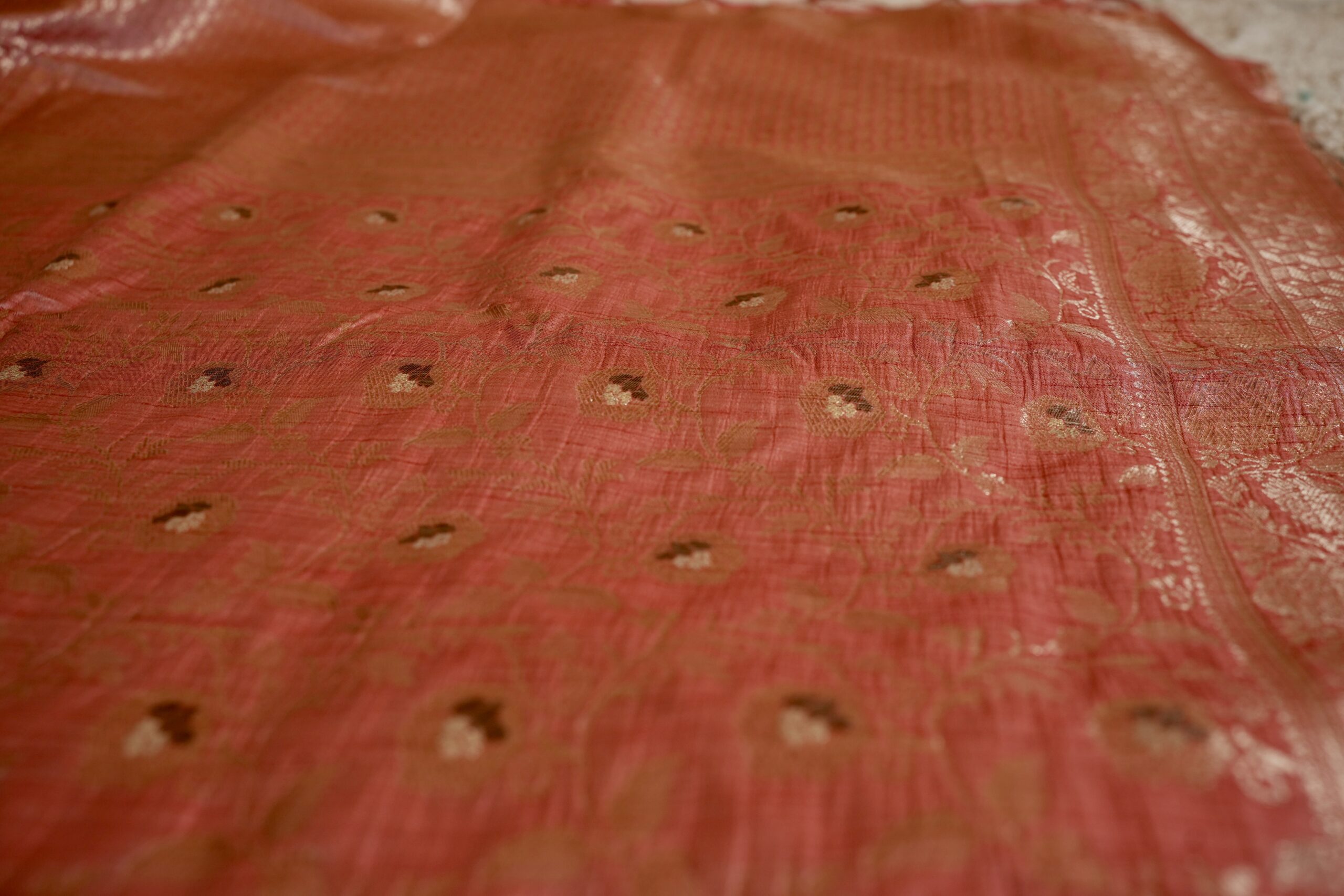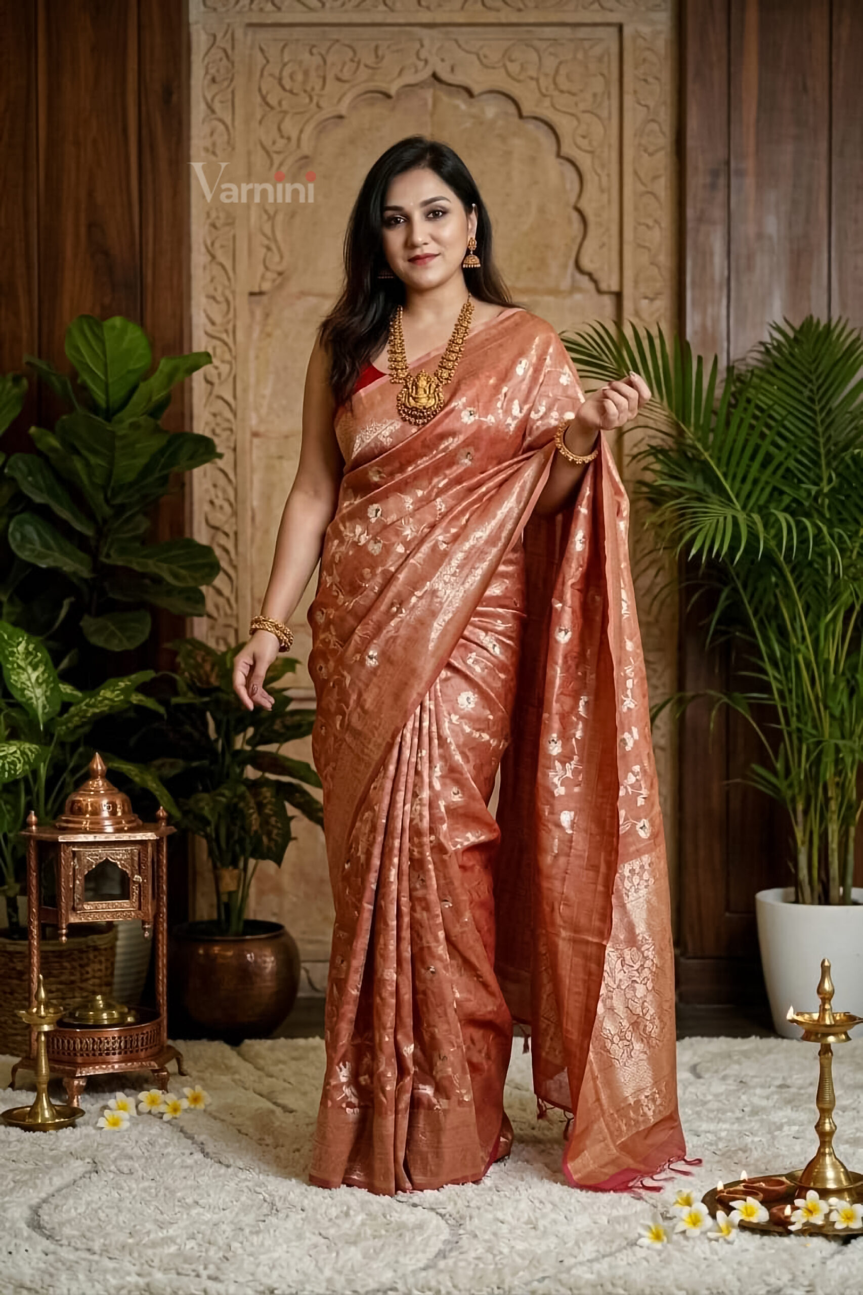 The “Aadhira” Tissue Silk Where moonlight meets copper.