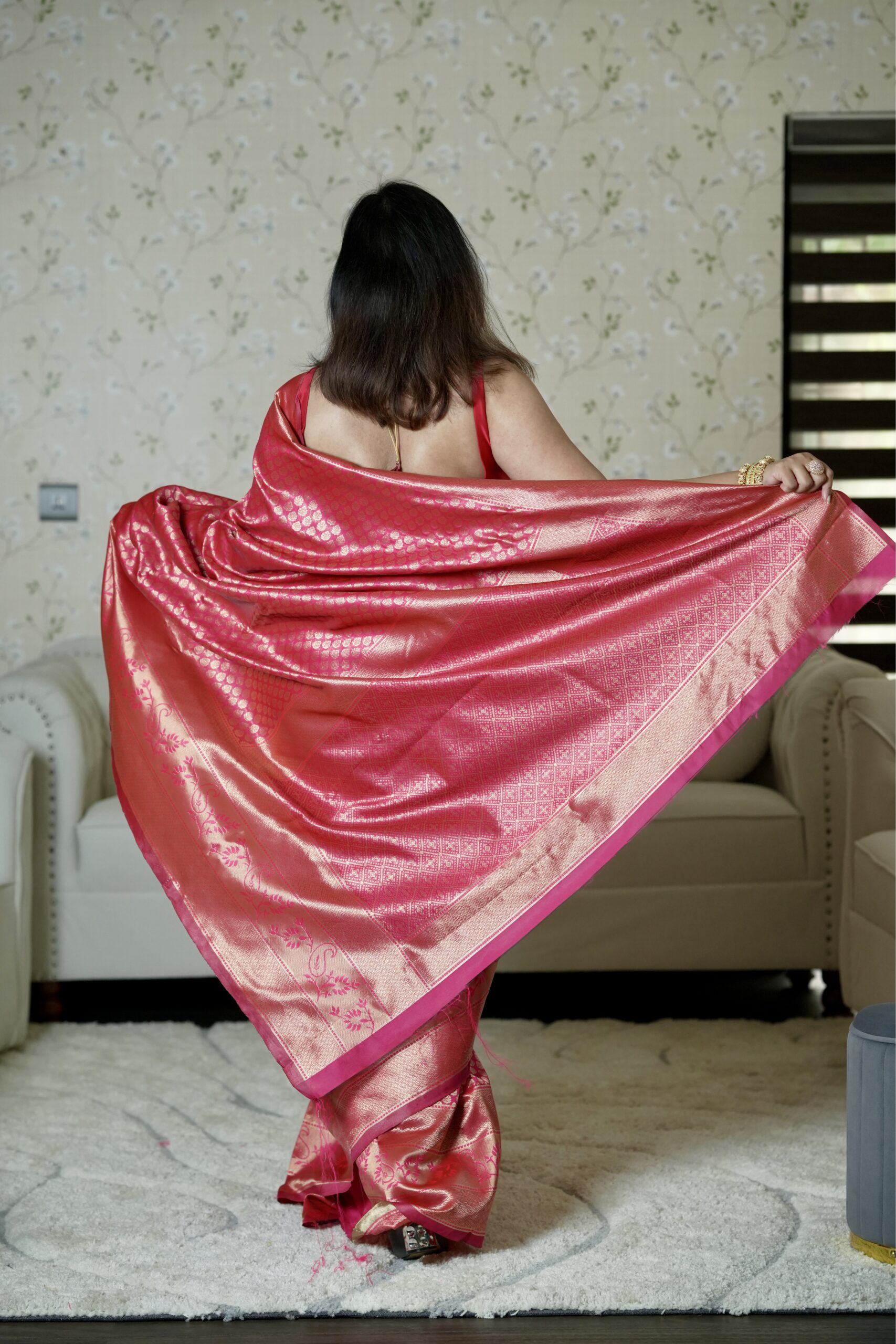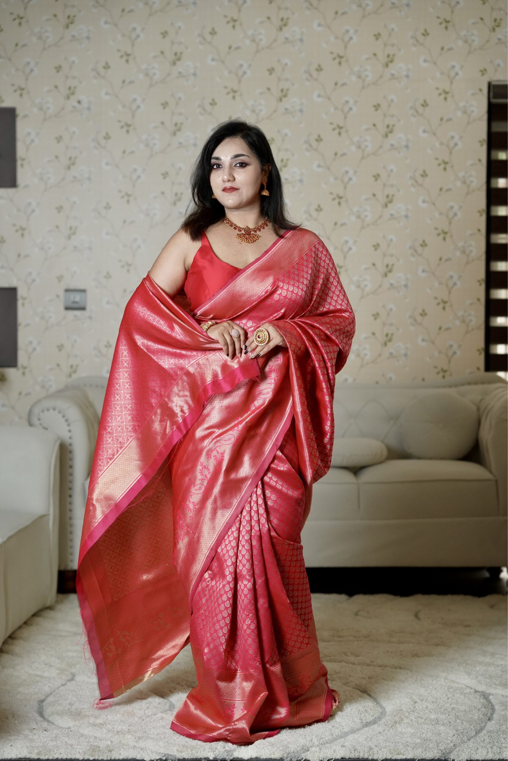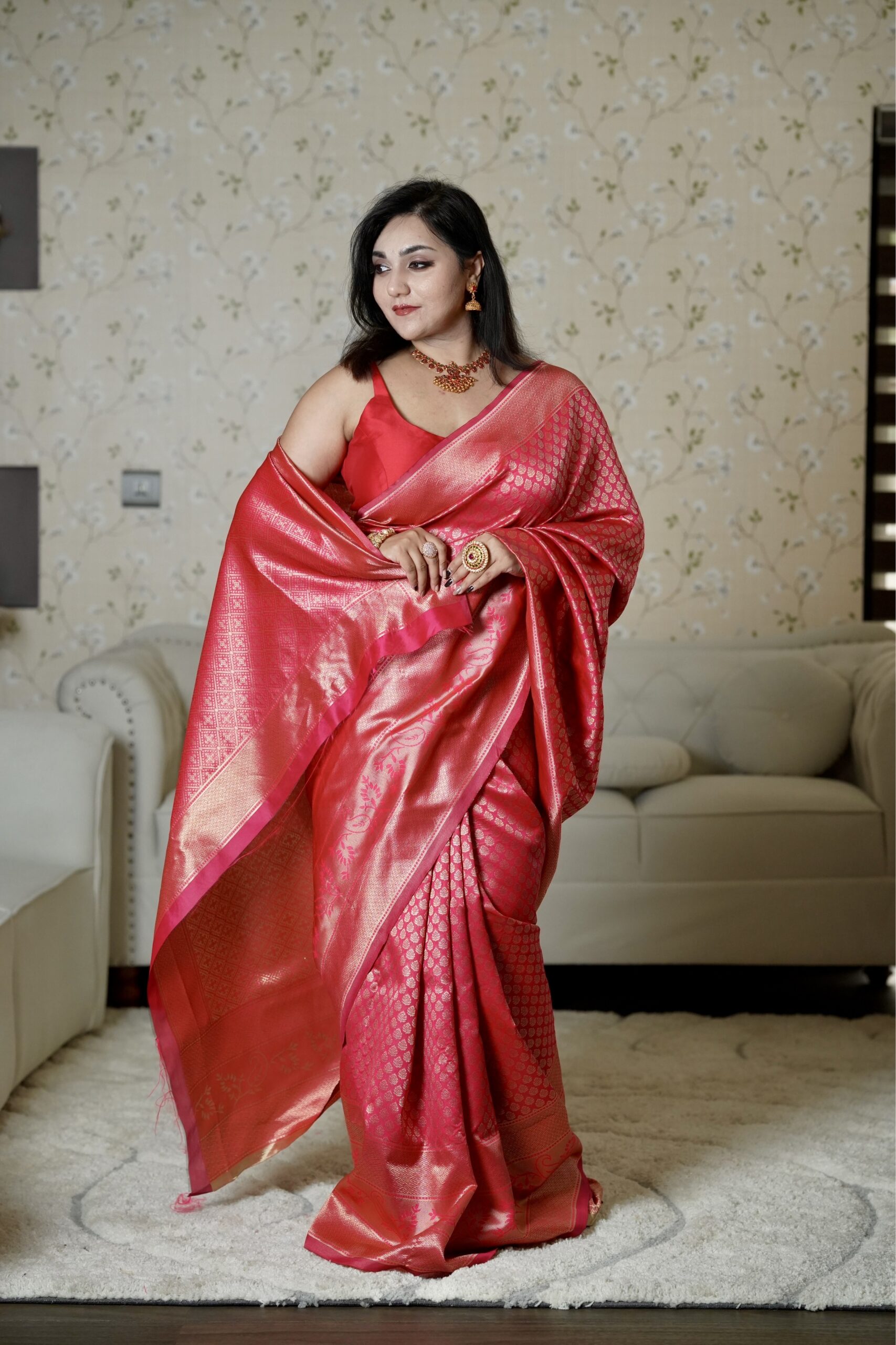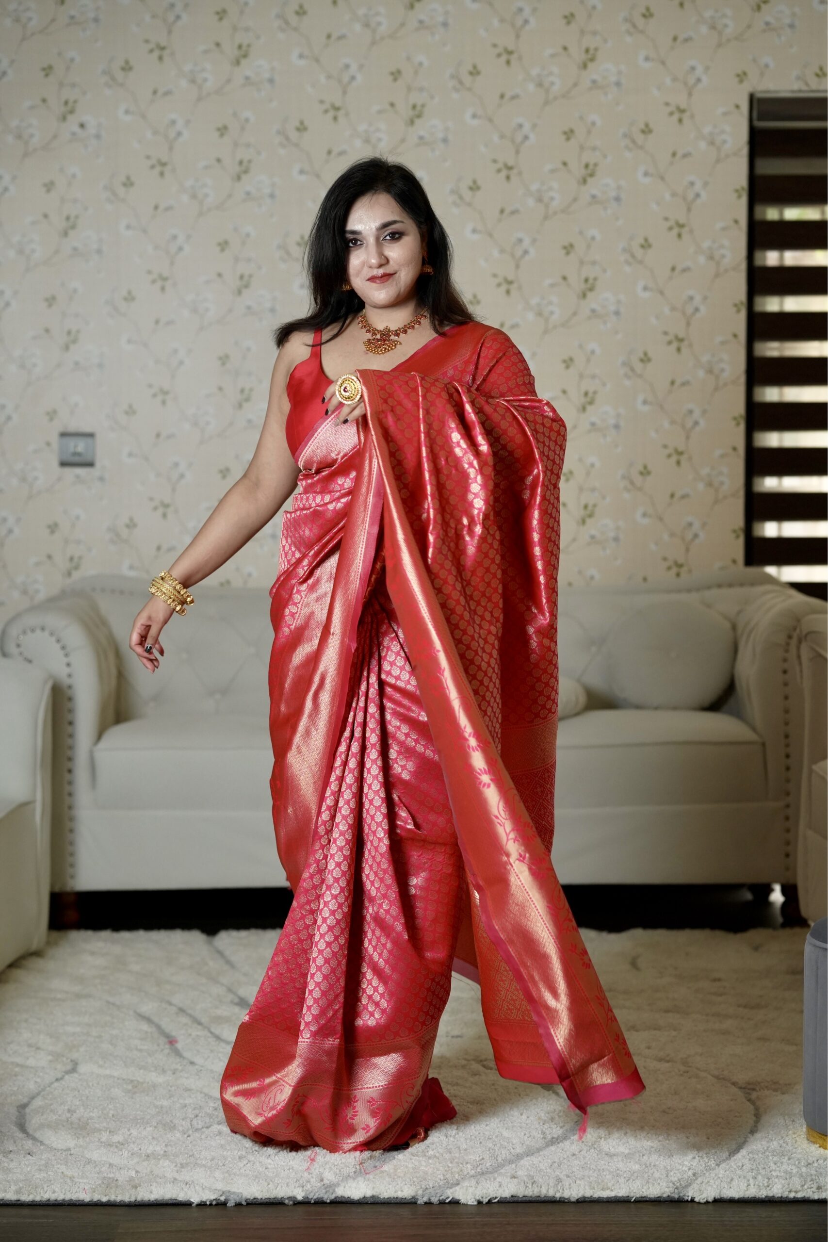 This saree is the embodiment of “Bridal Majesty.” It carries an energy of joy, prosperity, and undisputed elegance.